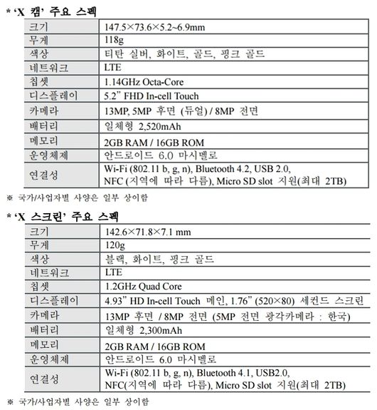 이번 ‘MWC 2016’에서 공개하는 ‘X 시리즈’는 ‘듀얼 카메라’를 탑재한 ‘X 캠’과 ‘세컨드 스크린’을 채택한 ‘X 스크린’ 등 2종이다. LG전자는 ‘X 시리즈’를 3월 한국부터 유럽, 중남미, 아시아 등 글로벌 시장에 순차 출시 예정이다.
