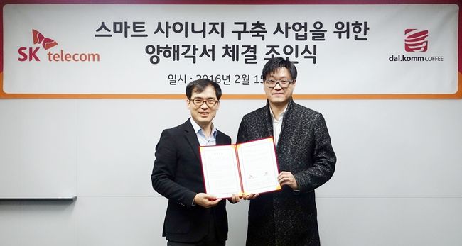 SK텔레콤이 스마트 사이니지 플랫폼 기반의 ‘스마트 메뉴보드’를 달.콤커피 전 매장에 공급하기로 협약(MOU)을 체결했다고 15일 밝혔다.