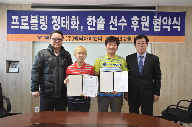 배드민턴 국가대표팀 공식후원사인 (주)빅터는 15일 경기도 남양주 본사 대회의실에서 한국 남녀 프로볼링의 간판 정태화, 한솔과 협약식을 갖고 후원에 나섰다.
