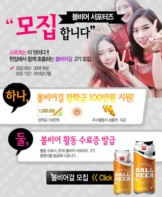 포항스틸러스가 2015시즌 볼비어걸 최고의 팀 선정에 이어 2016년 볼비어걸을 모집한다.