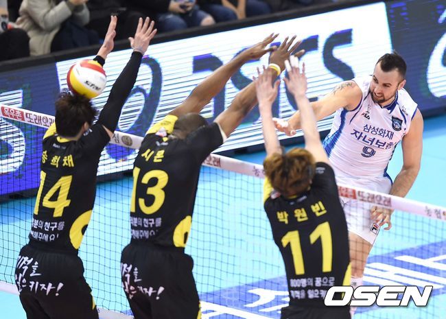 삼성화재가 OK저축은행을 3연패에 몰아넣었다.