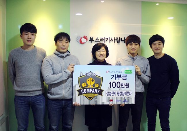 우승을 차지한 삼성전자 ‘평상심이쏜다’팀은 16일 저소득층 청소년 후원 단체인 부스러기사랑나눔회를 방문해 기부금 100만원을 전달했다. 부스러기사랑나눔회는 직장인 토너먼트 우승팀이 전해준 기부금을 교복 및 학용품을 준비하는데 어려움을 겪는 빈곤 아동들을 지원하는데 쓸 계획이다.
