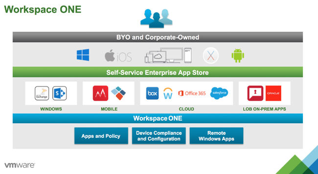 웍스페이스 원은 기업이 노트북, 스마트폰, 태블릿을 신속하게 사용할 수 있도록 셀프 서비스와 축소된 디바이스 프로비저닝이 통합 관리 플랫폼을 통해 iOS, 안드로이드, 윈도우 10과 같은 모바일 운영체제 관리 인터페이스를 지원할 수 있도록 한다. 따라서 직원들은 원하는 기기를 선택하고 기기별 사용, 관리 방식을 설정해 데이터 손실율을 줄이고 업무 효율성을 높이며 자기 소유의 기기를 업무에 활용하는 BYOD(Bring Your Own Device) 환경을 구현할 수 있다.