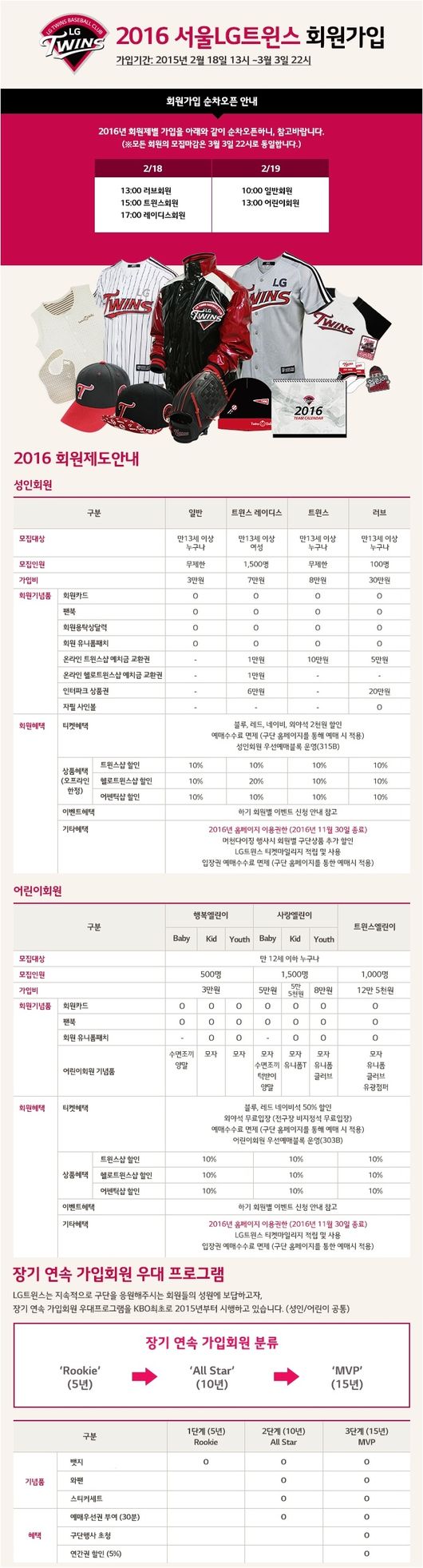서울 LG트윈스는 2016년 2월 18일부터 회원 모집을 시작한다.