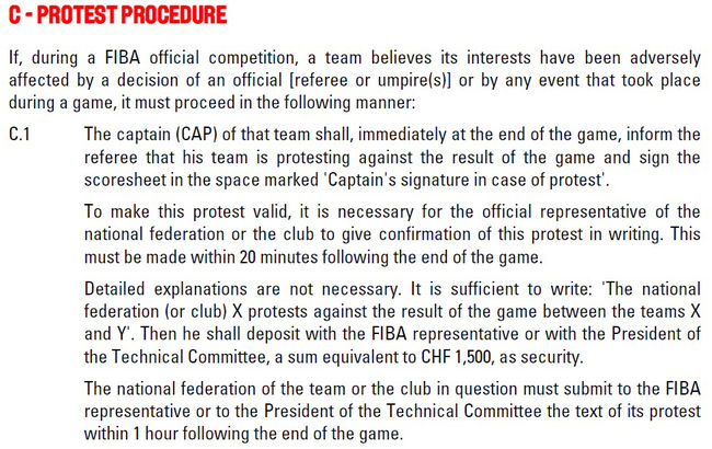 KBL 규정이 이와 같은 이유는 무엇일까. 국제농구연맹(FIBA) 규정에 근거를 두고 있기 때문이다. 경기 후 20분 안에 팀의 주장이 이의제기서를 서면으로 제출해야 인정되는 것은 FIBA도 동일하다. 서면질의서도 경기 후 한시간 안에 작성해서 기술위원회에 제출하도록 돼 있다.