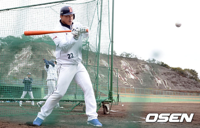 두산 베어스 홍성흔이 19일 오전 일본 미야자키 스프링캠프 훈련장에서 타격 훈련을 하고 있다.