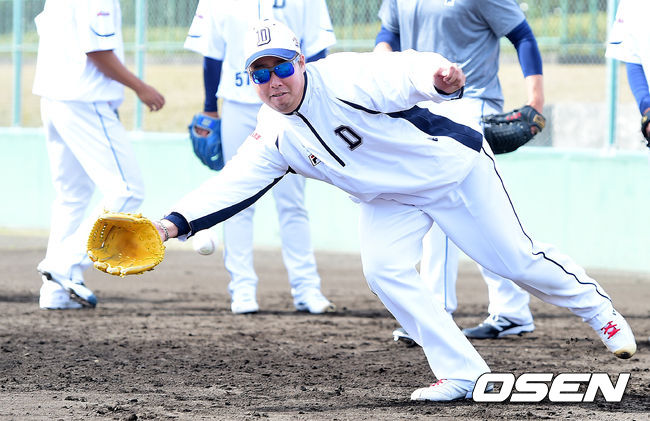 두산 베어스 유희관이 19일 오전 일본 미야자키 스프링캠프 훈련장에서 수비 훈련을 하고 있다.