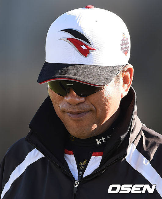 조범현 kt wiz 감독이 연습경기 승리를 거둔 투수진을 칭찬했다.