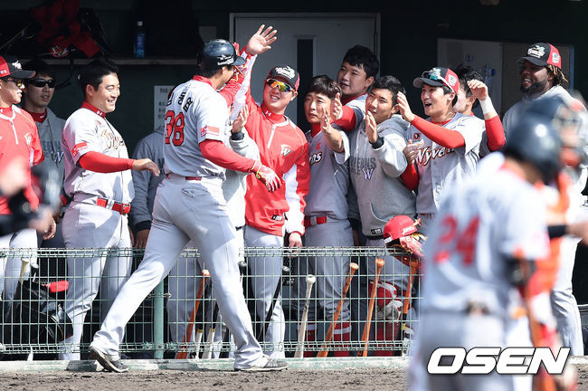 SK는 21일 일본 오키나와 고친다 구장에서 열린 한화와의 연습경기에서 초·중반 집중력을 보여주며 점수를 뽑은 타선의 힘에 힘입어 7-4로 이겼다. 지난 세 차례의 오키나와 연습경기에서 모두 졌던 SK는 이날 첫 승을 신고하며 본격적인 궤도 진입에 나섰다. 반면 최근 독감 여파로 연습경기 일정이 줄줄이 취소되기도 했던 한화는 오키나와 리그 첫 승을 다음으로 미뤘다.