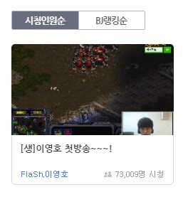 이영호가 21일 저녁 인터넷 스트리밍 플랫폼인 아프리카TV에서 개인 방송을 시작했다. 우선 스타1부터 시작하는 이영호의 아프리카TV 첫 방송에는 기존 아주부TV에서 진행하지 않았던 스타1을 진행해 e스포츠 팬들은 물론 관계자들의 관심도 집중됐다.