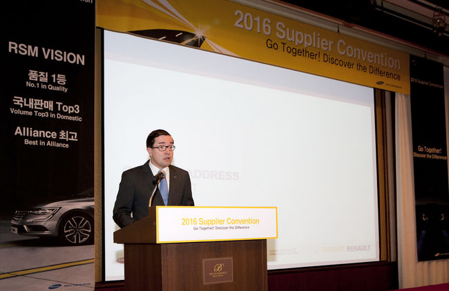 [사진] 2016 협력업체 컨벤션에서 연설하는 프랑수아 프로보 르노삼성자동차 사장. /르노삼성자동차 제공.