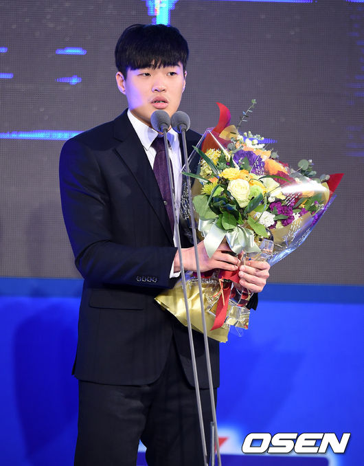 500만 원의 상금은 어디에 쓸까. 정성우는 “내가 잘해서 받은 상이 아니다. 구단 관계자분들이 도와주셨다. 형들도 도와주셨다. 상금은 형들에게 쓰겠다. 부모님도 드리겠다. 내년에는 기량발전상을 꼭 받고 싶다”고 포부를 밝혔다. / jasonseo34@osen.co.kr