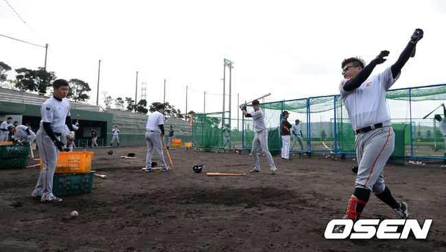 경기에 앞서 고치에서 오키나와 캠프로 옮긴 김태균, 정근우, 이용규가 오전 타격 훈련을 하고 있다. /sunday@osen.co.kr