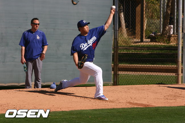 류현진은 다저스 투포수들이 스프링캠프 리포트를 내기 전 날인 19일 불펜에서 포수를 앉혀놓고 볼을 던졌지만 이날은 트레이너가 포수 역할을 했다.