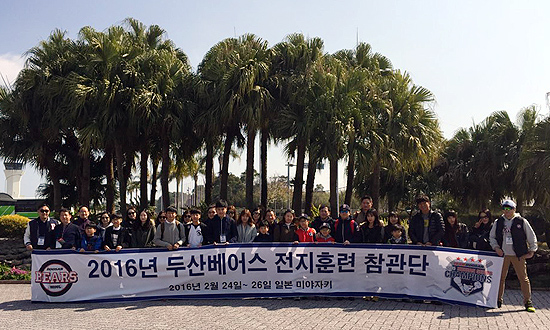 두산 베어스의 열혈팬 35명으로 구성된 '2016년 전지훈련 참관단'이 24일 오전 10시 인천공항(아시아나, OZ-158편)을 통해 선수단의 전지훈련지인 일본 미야자키로 출국했다.