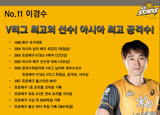 이경수는 14년 동안 KB스타즈 배구단에서 활약했한 프랜차이즈 스타로, 프로배구 출범 이후 가장 많은 기록(별첨기록참조)을 보유하고 있다. 이런 이경수 선수의 은퇴를 기념하기 위해 '그대는 내마음의 영원한 레전드!'라는 주제로 다양한 기념행사를 준비했다.