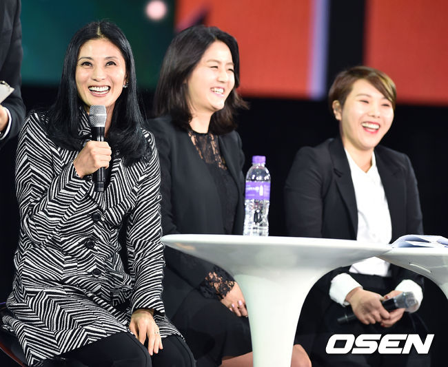 발레리나 강수진, 방송인 손미나, 신봉선이 미소 짓고 있다.