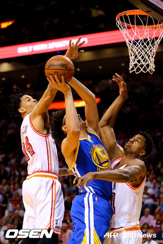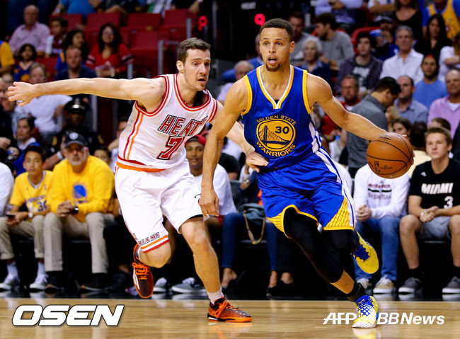 골든스테이트는 25일(한국시간) 미국 플로리다주 마이애미 아메리칸 에어라인스 아레나에서 벌어진 2015-2016 미국프로농구(NBA) 정규시즌에서 홈팀 마이애미 히트에 118-112로 대역전승을 거뒀다. 51승 5패의 골든스테이트는 여전히 압도적인 NBA 1위를 질주했다.