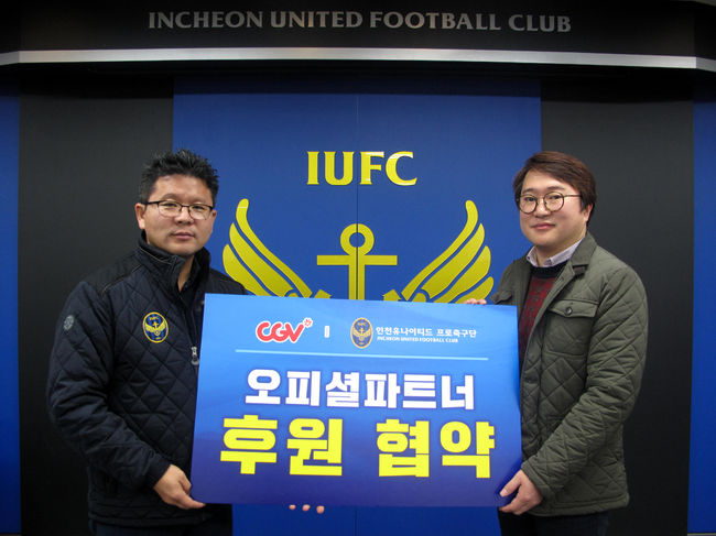 인천유나이티드와 CGV 인천점은 지난 23일 인천축구전용경기장에서 오피셜 파트너 협약을 맺었다. 이에 따라서 인천과 CGV 인천점은 올 한해 손을 맞잡고 스포츠와 문화산업의 공동발전을 추구하게 됐다.