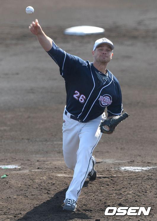 스프링캠프 연습경기에 처음 선발로 나선 마이클 보우덴(30, 두산 베어스)이 문제점을 노출하며 부진한 투구 내용을 보였다.