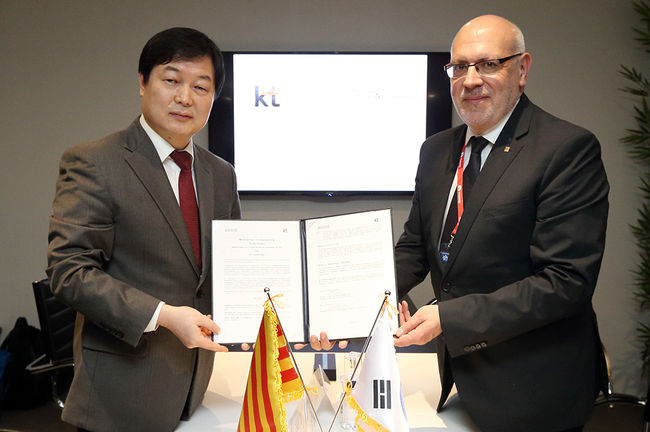 KT는 '모바일월드콩그레스(MWC) 2016'에서 기가 와이어 등 KT 기가 솔루션을 활용한 상호 협력방안에 대해 스페인 카탈루냐 주정부 및 바르셀로나 아파트 임대협회와 24일(이하 현지시간) 업무협약(MOU)을 체결하였다고 밝혔다.