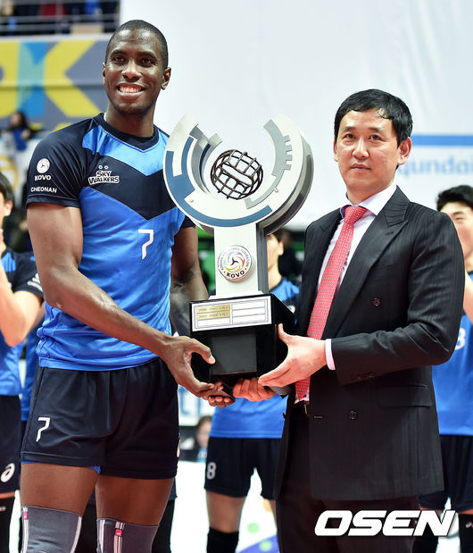 경기가 끝난 후 현대캐피탈 오레올과 최태웅 감독이 우승컵을 들고 있다. /eastsea@osen.co.kr