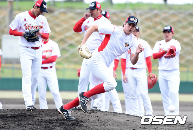 25일 SK의 훈련이 열린 일본 오키나와의 구시가와 구장. 점심 식사를 마친 투수들이 훈련이 시작되기 전 실내연습장에 앉아 가볍게 소화를 시키고 있었다. 그 때 한 외국인 투수의 영어 발음 강습이 시작됐다. 주제는 다양했다. 선수들이 자주 가는 패스트푸드점의 정확한 발음을 알려주는가 하면, 간단한 영어 단어, 그리고 동료 선수들의 이름까지 원어민의 발음으로 교정해줬다. 잘 따라하지 못하면 주위 투수들의 박장대소가 터졌다.