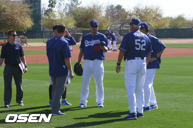 이에 앞서 류현진은 지난 21일 스프링캠프 첫 훈련 때는 10파운드짜리 메디신볼을 들고 나오기도 했다. 이 볼을 글러브에 담은 상태에서 볼을 던졌다. 당시 류현진은 이렇게 한 이유에 대해 “글러브 쥔 손이 자꾸 벌어지는 것을 막기 위해서”라고 설명한 바 있다. 글러브 쥔 손이 벌어지면 우측 어깨가 먼저 열리고 아울러 볼을 던지는 좌측팔의 스윙이 자연스럽지 못하게 된다. 구속이 떨어지고 어깨에도 무리가 올 수 있다. 류현진이 그 동안 재활운동을 열심히 했다고는 하지만 피칭동작은 오랜만이므로 어절 수 없이 생기게 된 버릇인 셈이다.