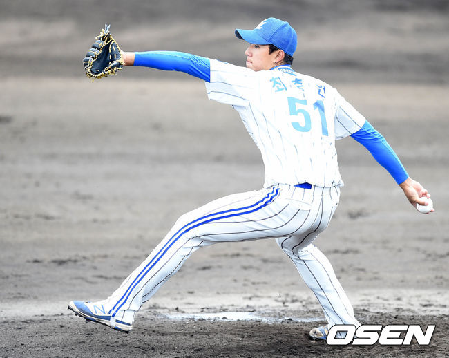 일본 오키나와 2차 캠프에서 열린 연습 경기 내내 호투 행진을 이어갔던 그는 25일 한화와의 대결에서 혼쭐이 났다. 0-1로 뒤진 4회 선발 이케빈에 이어 두 번째 투수로 마운드에 오른 최충연. 아웃 카운트 하나도 잡지 못하고 고개를 떨궜다.