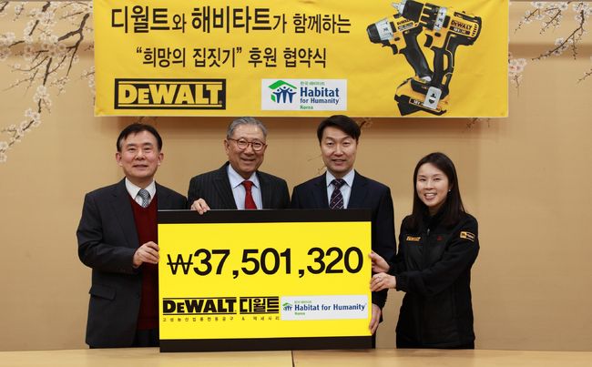 고성능 전문가용 전동공구 브랜드 디월트(DeWalt)가 한국해비타트 ‘희망의 집짓기’에 필요한 전동공구 및 수공구 지원을 약속하는 협약식을 가졌다.