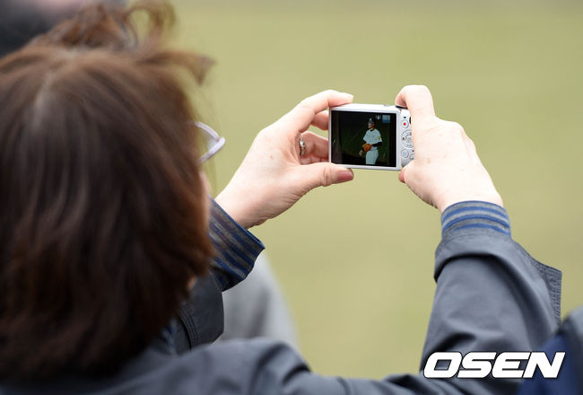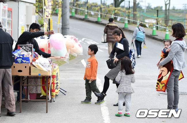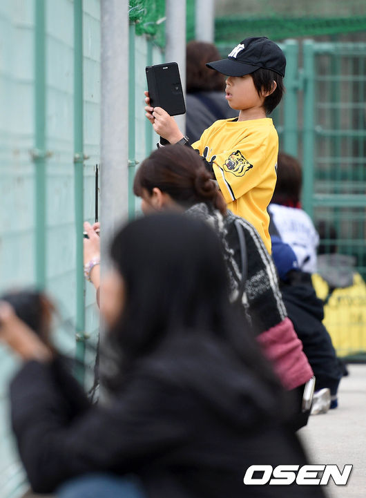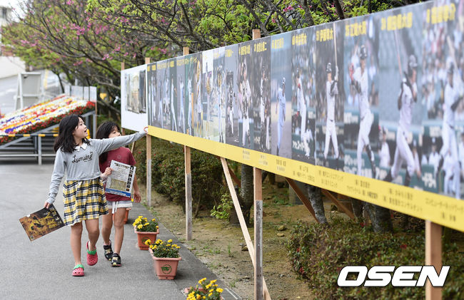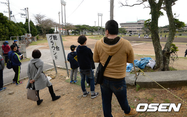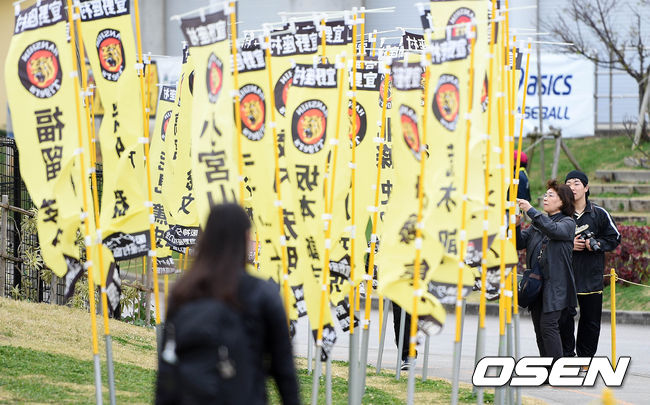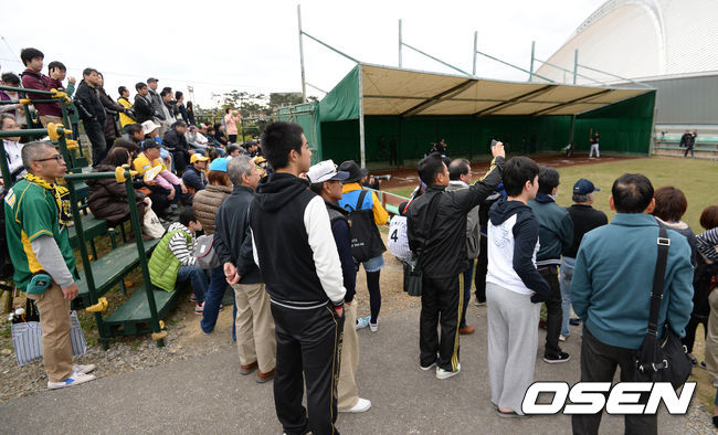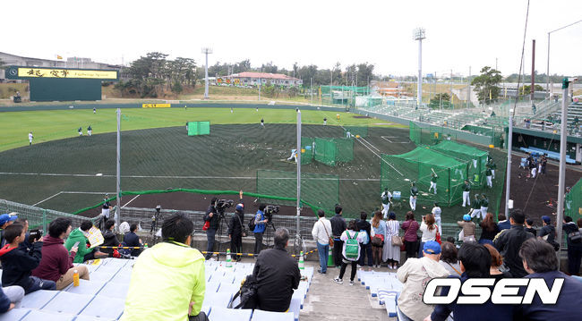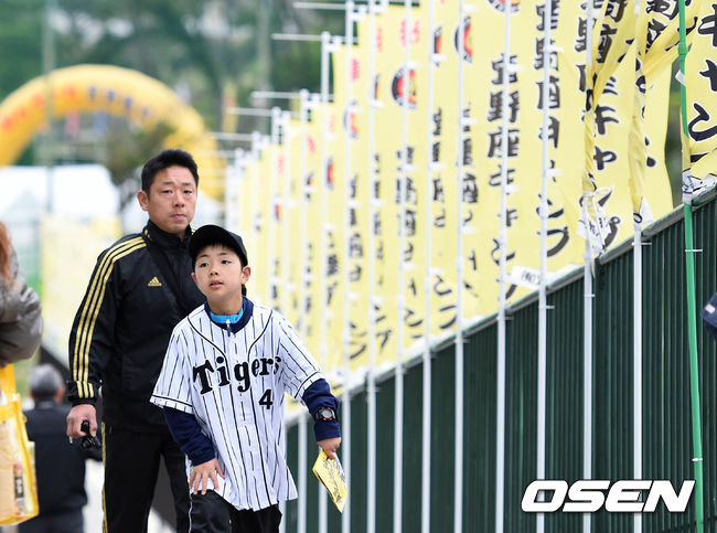 경기에 앞서 수많은 팬들이 한신 캠프장을 찾아 훈련 중인 선수들을 바라보고 있다.