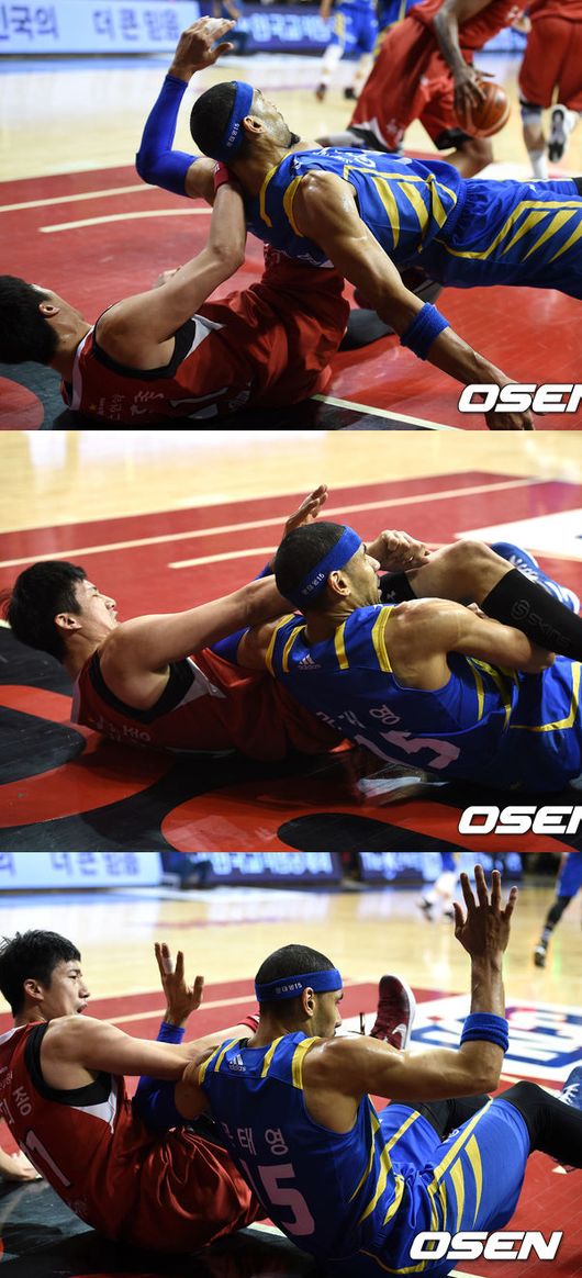 초반부터 양희종 대 문태영이 불꽃 튀었다. 문태영이 양희종을 뿌리치고 뛰어나가는 과정에서 신체접촉이 있었다. 코트에 넘어진 양희종은 통증을 호소했다. 신경전의 시작이었다.