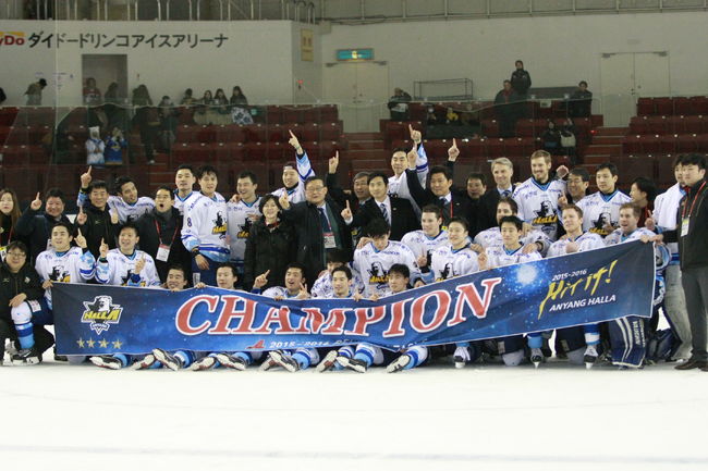 안양 한라가 정규리그 2연패에 성공했다. 27~28일 일본 도쿄에서 열린 2015-2016 아시아리그 아이스하키 도쿄 집결전에서 한라는 1승 1패를 기록, 승점 114점으로 사상 최고 성적으로 정규리그 우승을 차지했다.