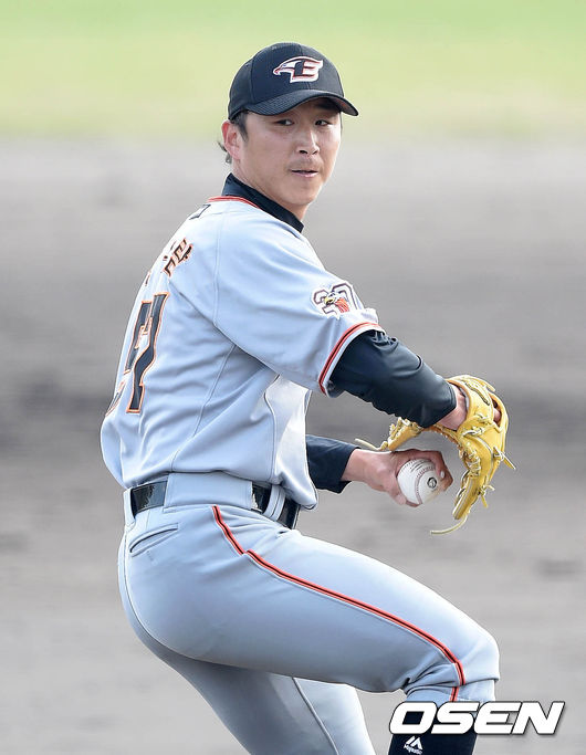 정우람은 29일 일본 오키나와 고친다구장에서 열린 넥센과 연습경기에 8회 무사 1루에서 구원등판, 2이닝 4피안타 무사사구 1탈삼진 1실점으로 막았다. 한화 유니폼을 입고 치른 첫 실전 경기, 아직 100% 컨디션이 아니었지만 던질수록 컨디션을 찾는 모습이었다.
