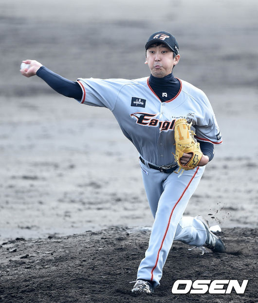 심수창은 지난달 29일 일본 오키나와 고친다구장에서 벌어진 넥센과 연습경기에 5회 구원등판했다. 결과는 1⅔이닝 2피안타 1볼넷 1탈삼진 1실점. 기록만 보면 크게 눈에 띄지 않지만 캠프 첫 실전 등판으로 내용이 괜찮았다. 20개의 공을 던지며 최고 구속 141km. 변화구는 포크볼을 주로 구사했다.