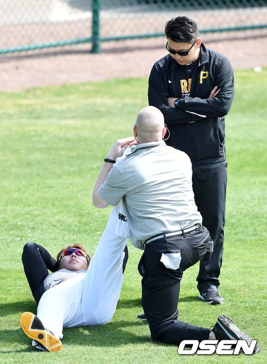 강정호는 1일(이하 한국시간) 미국 플로리다주 브레이든턴 맥케크니필드에서 팀 훈련과 개인 재활훈련에 임했다. 팀 동료들과 3루 수비훈련과 타격훈련을 했고, 팀 훈련이 끝나고 나서는 구단 트레이너와 함께 재활에 힘썼다.