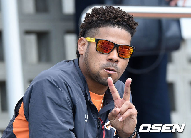 경기에 앞서 한화 로저스가 더그아웃에서 동료들을 격려하며 화기애애한 분위기를 연출하고 있다. /sunday@osen.co.kr