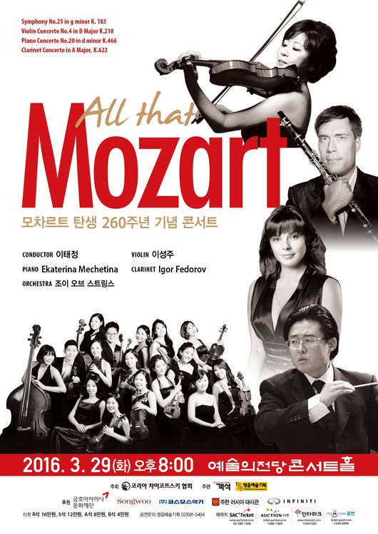 인피니티 코리아(대표: 이창환)가 3월 29일 저녁 8시 예술의전당에서 열리는 '모차르트 탄생 260주년 기념 콘서트'를 공식 후원한다.
