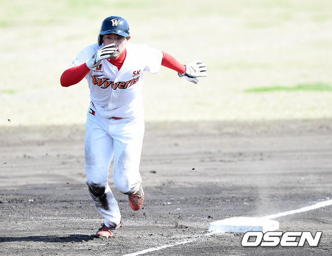 SK는 2회 2사 후 이대수의 중전안타와 김동엽, 유서준의 연속 몸에 맞는 볼로 만루를 만들었다. 이어 이명기가 우익선상 3타점 3루타를 때려내 선취점을 올렸다. 이명기는 5회 볼넷으로 출루한 뒤 2루를 훔쳤고 3루 스타트를 끊었다가 포수 송구가 빠진 틈에 득점까지 성공했다.