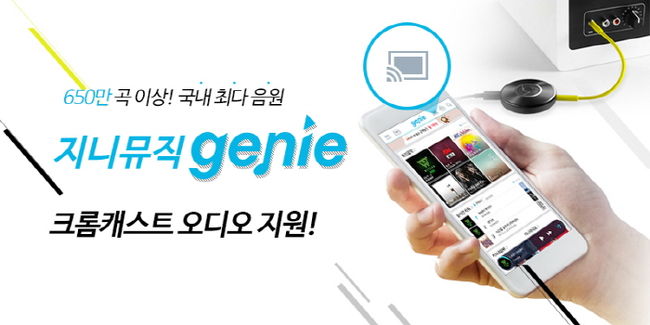 음원서비스 지니는 크롬캐스트 오디오사용자 5000명에게 지니음악감상 100회권을 제공한다.