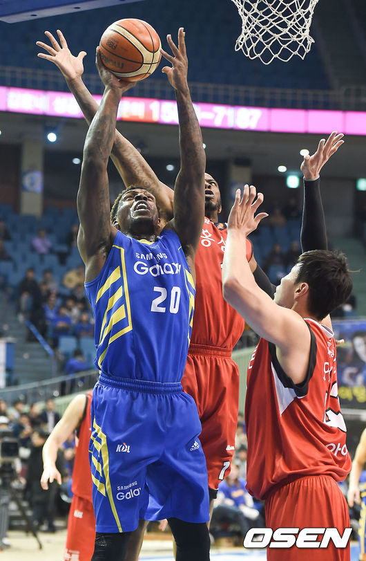 2일 오후 서울 잠실실내체육관서 열린 2015-2016 KCC 프로농구 6강 플레이오프(5전3승제) 4차전 서울 삼성과 안양 KGC의 경기, 1쿼터 삼성 라틀리프가 골밑슛을 시도하고 있다.