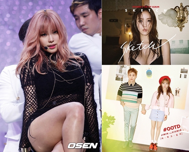 완전체가 아닌 솔로로 출격하는 걸그룹 멤버들의 대결도 빼놓을 수 없다. 먼저 AOA의 지민은 이날 0시 솔로곡 '야 하고 싶어'를 발매했다. 보이그룹 엑소 멤버 시우민과 호흡을 맞춘 이 곡은 국내 최대 음원사이트 멜론 실시간차트 1위를 차지하면서 인기를 끌고 있다. 시우민과 지민의 사랑스러운 하모니가 곡의 분위기를 한껏 살렸다는 반응이다.