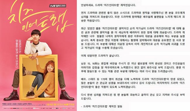 이는 '치인트' 제작진이 대본 공유나 엔딩에 대한 순끼 작가의 지적들에 대해 "이윤정 감독이 이미 개인적으로 순끼 작가님께 사과를 드렸고, 작가님이 이를 수용해 주셨다"라고 밝힌 공식입장과 관련된 변화로 추측된다.