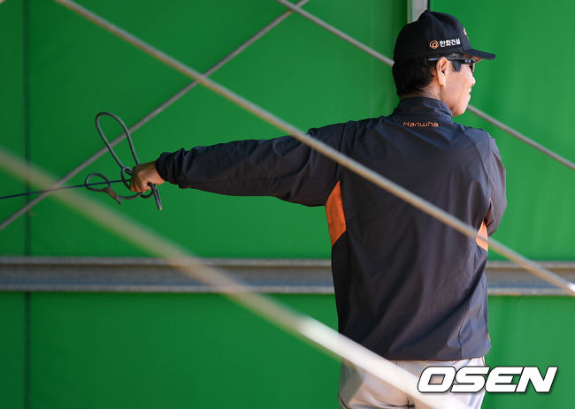 한화 김성근 감독과 투수 12명이 오키나와 캠프에서 추가 훈련을 실시한다.