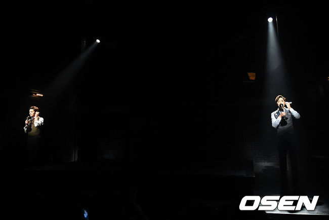 3일 오후 서울 대학로 대명문화공장에서 진행된 뮤지컬 '쓰릴 미' 프레스콜에서 배우 강영석과 임병근이 열연을 펼치고 있다.