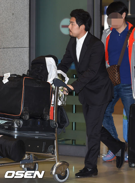 한화 이용규가 일본 오키나와 전지훈련을 마치고 3일 오후 인천국제공항을 통해 입국하고 있다.