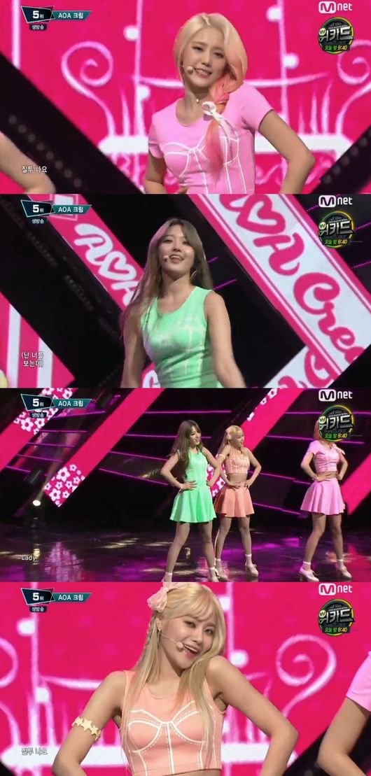 AOA크림은 3일 오후 방송된 케이블채널 Mnet '엠카운트다운'에서 '질투나요 BABY' 무대를 선보였다.