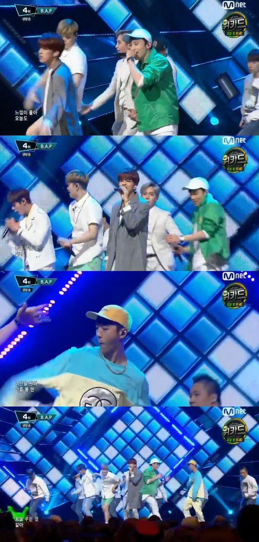 이날 B.A.P는 밝은 분위기의 멜로디에 어울리는 무대매너를 보여줬다. 무대를 장악하고 즐기는 B.A.P는 보는 사람의 기분까지 좋아지게 만들었다.
