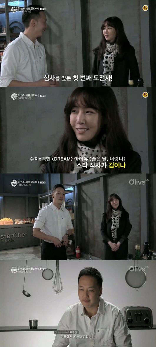 이날 서바이벌의 첫 번째 도전자는 미국에서 온 케빈 킴. 아이유 '좋은 날' 등의 작사가로 유명한 김이나가 케빈 킴을 응원해 눈길을 끌었다.