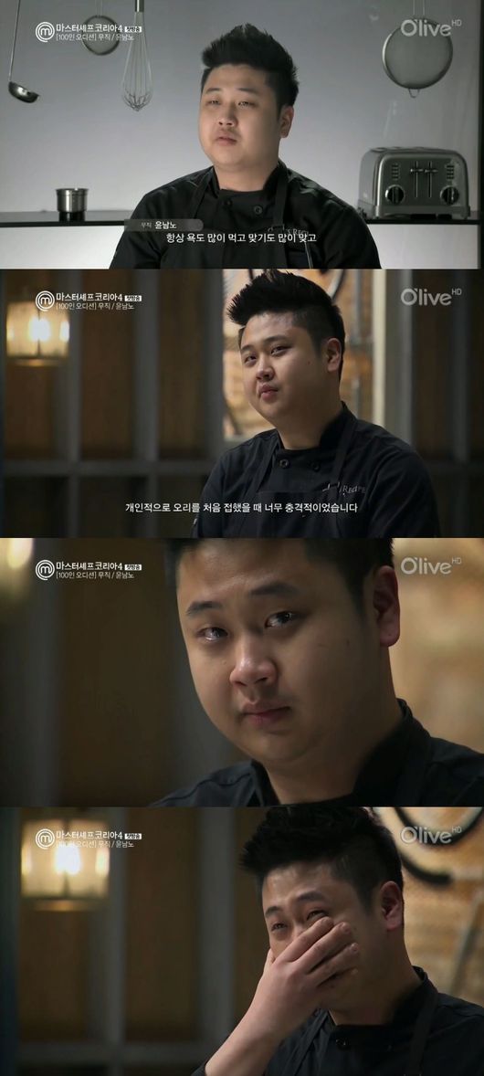도전자 윤남노가 심사위원들의 칭찬에 눈물을 보였다.